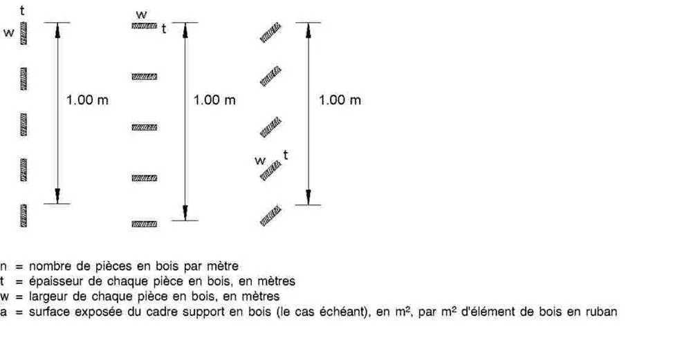 Figure b : Surface maximale exposée d’élément de bois en ruban 2n (t + w) + a ≤ 1,10
