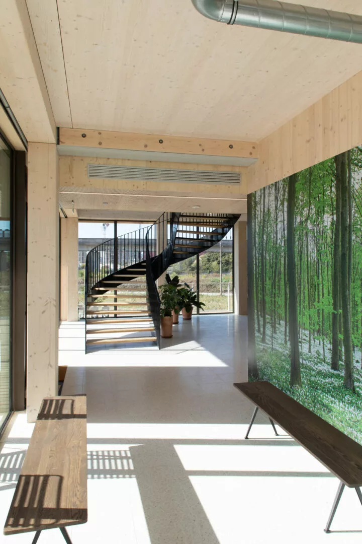 Panneau en bois massif reconstitué de type 3 plis massifs en épicéa ignifugé dans la masse. Cet Ignipli® a été verni avec un Verniflam® PU non-déclassant, à savoir qui ne modifie pas la réaction au feu du support bois ignifugé Euroclasse B-s1,d0. Le vernis bois non-déclassant utilisé peut être mat ou extra-mat et posséder différentes intensité de blanc ou même coloré, en fonction des besoins esthétiques et architecturaux.