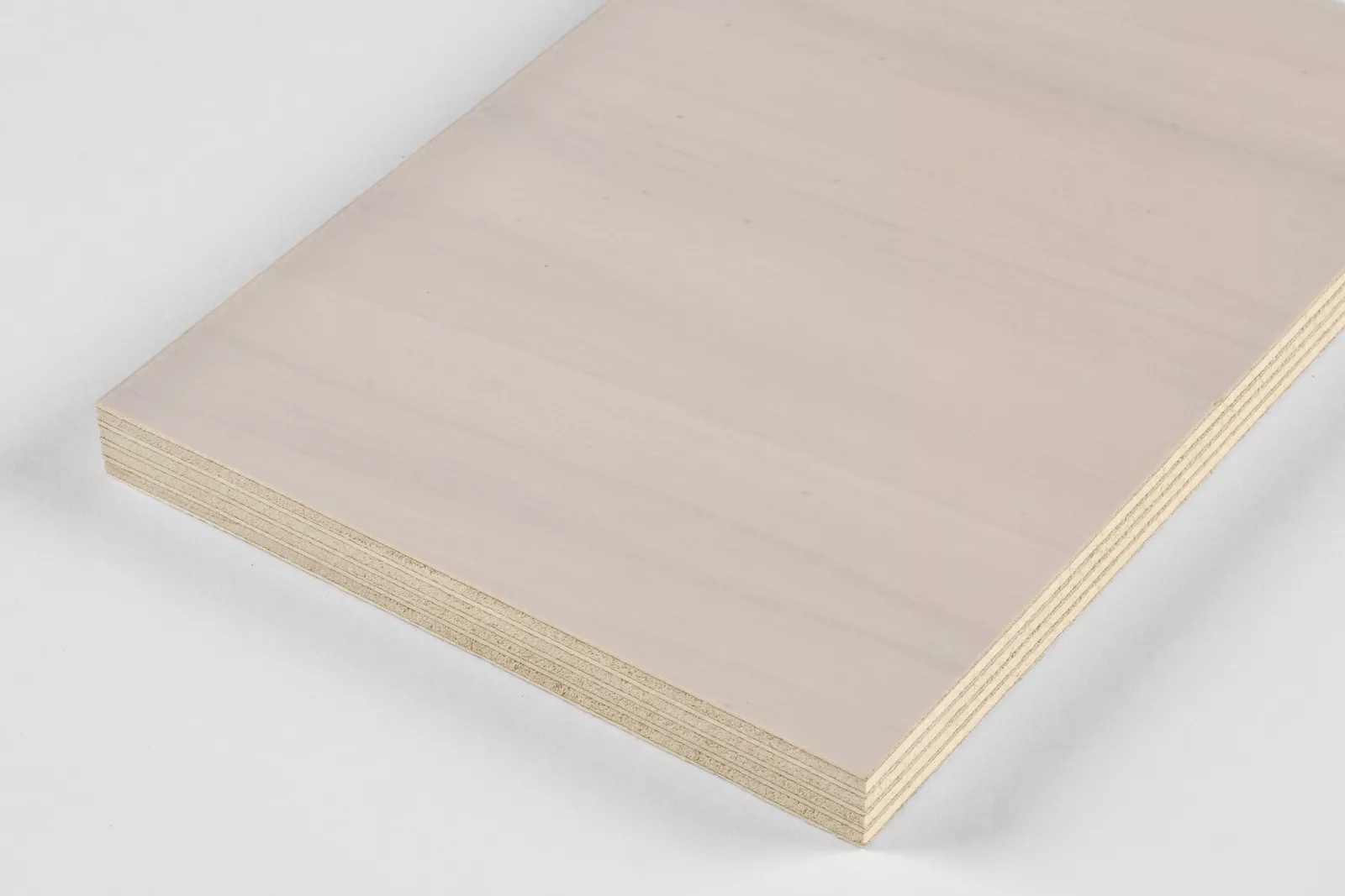 Panneau en bois massif reconstitué de type contreplaqué en peuplier ignifugé dans la masse. Ce Multiply® a été verni avec un Verniflam® non-déclassant, à savoir qui ne modifie pas la réaction au feu du support bois ignifugé Euroclasse B-s1,d0. Le vernis bois non-déclassant utilisé peut être mat ou extra-mat, en fonction des besoins esthétiques et architecturaux.