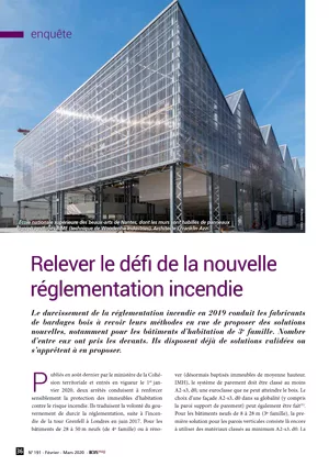 L’amélioration des performances du bois vis-à-vis du feu se fait « soit en réaction (capacité d’un combustible à propager un incendie) soit en résistance (permettre au matériau de conserver ses résistances mécaniques) », décrypte Jean-Baptiste Aurel (Woodenha). Les techniques utilisées ? …