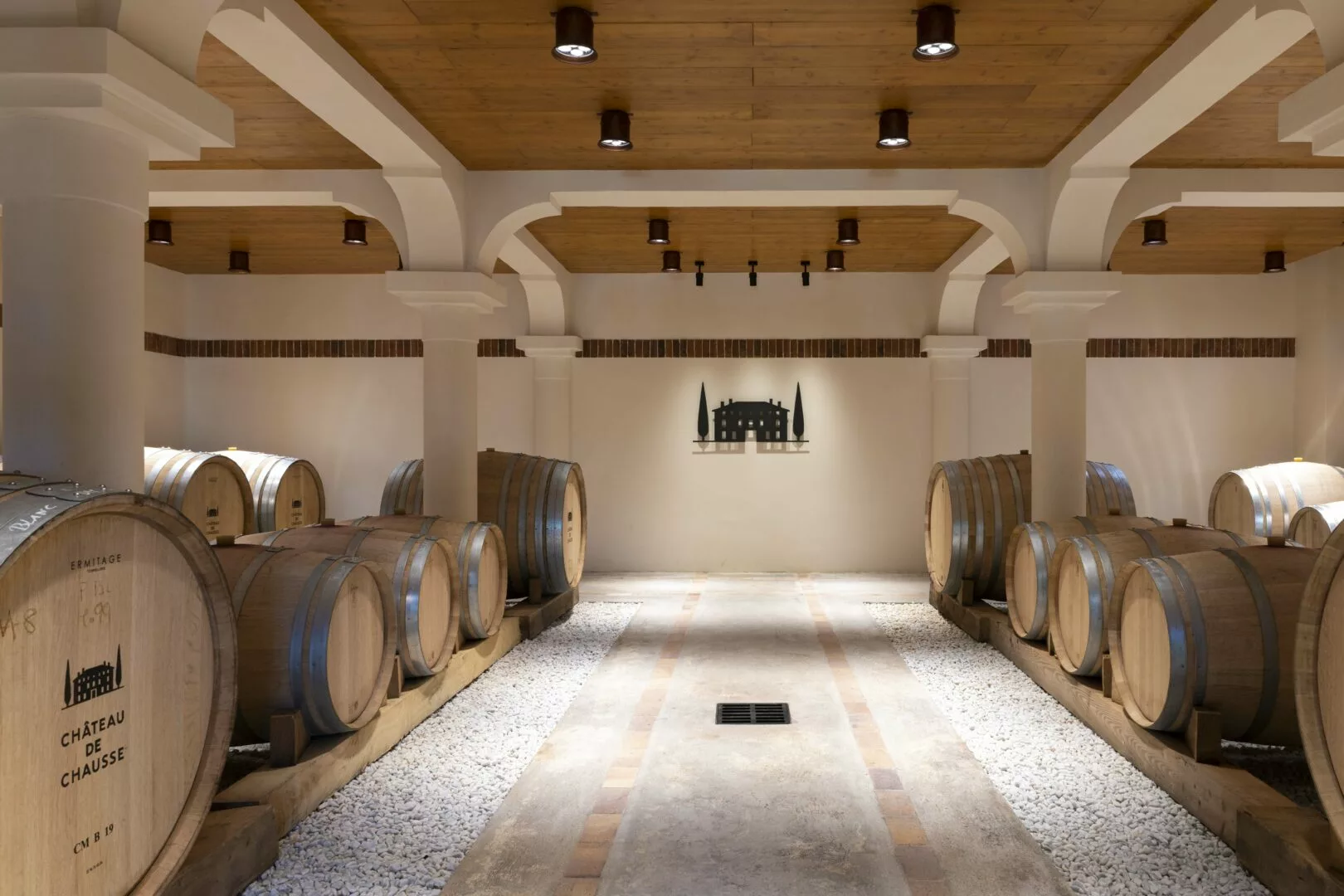 le Château de Chausse s’étend sur 15 ha de vignes sur les collines de La Croix Valmer et de Gassin, au coeur des plus beaux terroirs du Golfe de Saint-Tropez. La cave, les chais ainsi que la salle de dégustation ont bénéficié d’un habillage en Mélèze (3 plis) ignifugé par Woodenha.