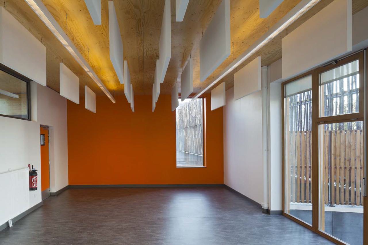 Ce programme d’extension favorise l’identification d’un lieu unique en mettant en relation les différentes composantes de chaque époque, en créant une façade « trait d’union » en bois et verre. Le principe structurel repose sur l’alliance du bois et du béton. Le bois est utilisé en structure primaire (poteaux-poutre en lamibois), en plancher et toiture (caissons en H grande portée préfabriqués en lamibois ignifugés dans la masse et par application de vernis intumescent quand les longueurs trop grandes ne permettaient pas un passage en autoclave)