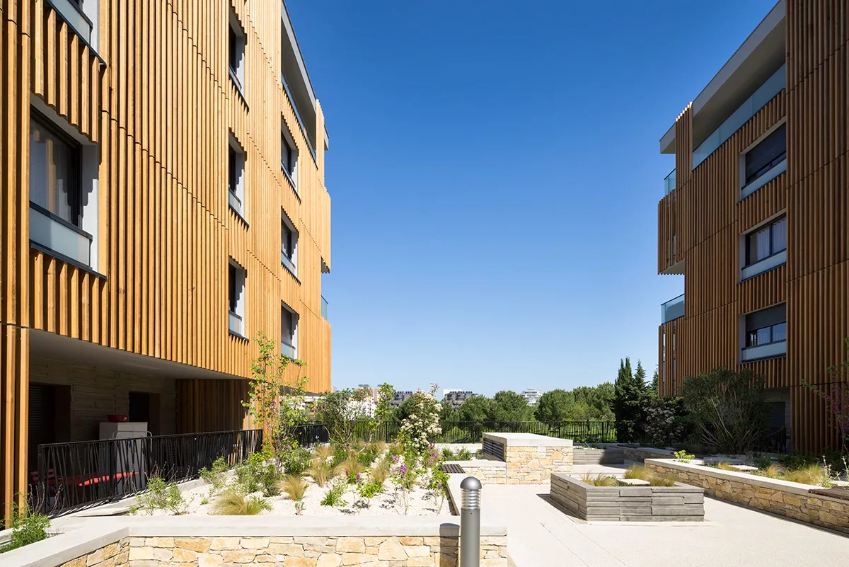 Situé en rive du grand parc Georges Charpak à Montpellier, le lot 14 de la ZAC Port Marianne est composé de 36 logements collectifs répartis sur deux immeubles jumeaux identiques et symétriques, organisés de part et d’autre d’un cœur d’îlot ouvert et végétalisé.