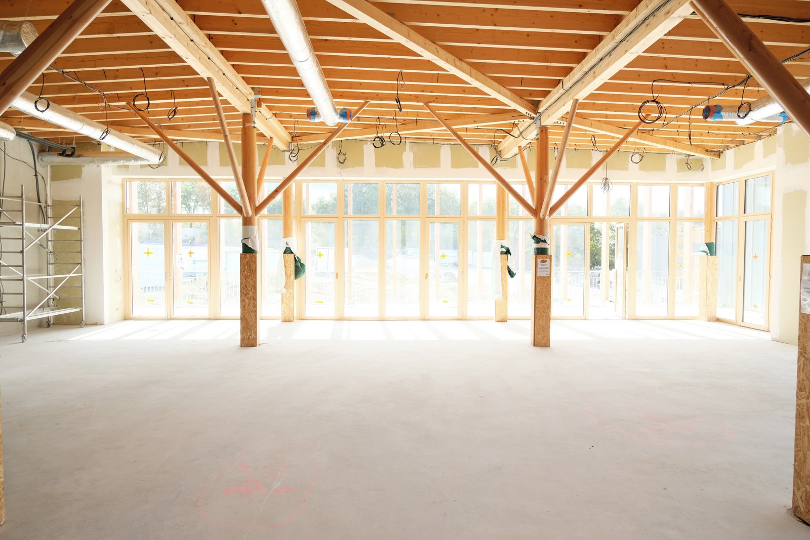 Une grande partie des éléments structurels en CLT (Cross-Laminated Timber) en intérieur seront apparent et ont du être recouverts de vernis intumescent translucide mat pour cadrer avec la réglementation de réaction au feu des parois dans ce type d’ERP (cas général : Euroclasse B pour les plafonds et Euroclasse C pour les murs). Par ailleurs, le complexe innovant de bardage en bois avec isolation en paille compressé devait répondre d’une Euroclasse C ; Woodenha Industries a ignifugé les éléments en douglas constituant le bardage et a validé un Rapport de Classement au FCBA spécifique à cette pose, puisque des épines verticales ont été rapportés sur les lames à enclenchement (système continu).